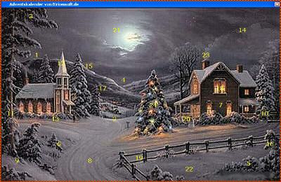 Ein Adventskalender der klassischen Art. Beim Klicken auf die jeweilige Zahl erscheint an dieser Stelle eine animierte Grafik mit weihnachtlichen Motiven.